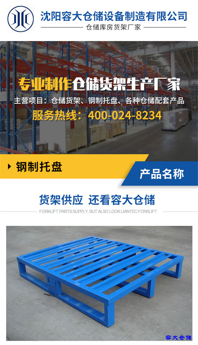 鋼托盤(鋼制托盤)是傳統(tǒng)木托盤、塑料托盤的理想換代產(chǎn)品,適合叉車作業(yè),存取貨物方便.主要用于多用途的地面存儲、貨架存儲及貨物聯(lián)運、周轉(zhuǎn)等超輕金屬托盤系列。集裝、堆放、搬運和運輸?shù)姆胖米鳛閱卧摵傻乃狡脚_裝置。是現(xiàn)在工業(yè)重要的倉儲與運輸輔助設(shè)備之一。主要材料為鋼材或鍍鋅鋼板,經(jīng)專用設(shè)備成型,各種型材互相支撐,鉚釘連接加強,再經(jīng)CO2氣體保護焊焊接而成。