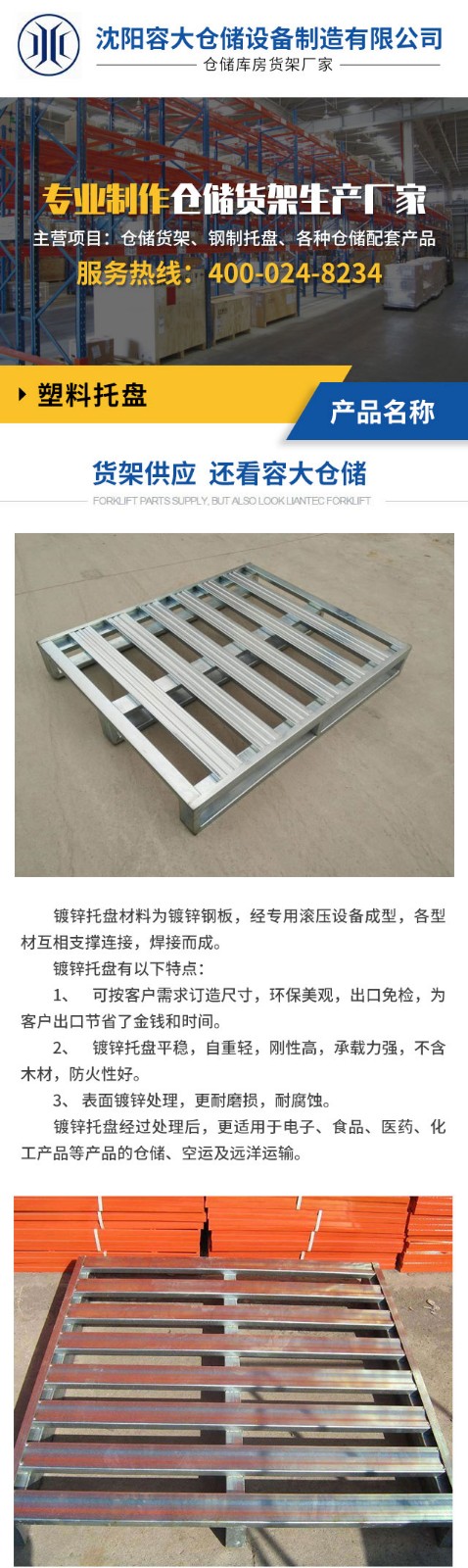 鋼托盤(鋼制托盤)是傳統(tǒng)木托盤、塑料托盤的理想換代產(chǎn)品,適合叉車作業(yè),存取貨物方便.主要用于多用途的地面存儲、貨架存儲及貨物聯(lián)運(yùn)、周轉(zhuǎn)等超輕金屬托盤系列。集裝、堆放、搬運(yùn)和運(yùn)輸?shù)姆胖米鳛閱卧?fù)荷的水平平臺裝置。是現(xiàn)在工業(yè)重要的倉儲與運(yùn)輸輔助設(shè)備之一。主要材料為鋼材或鍍鋅鋼板,經(jīng)專用設(shè)備成型,各種型材互相支撐,鉚釘連接加強(qiáng),再經(jīng)CO2氣體保護(hù)焊焊接而成。