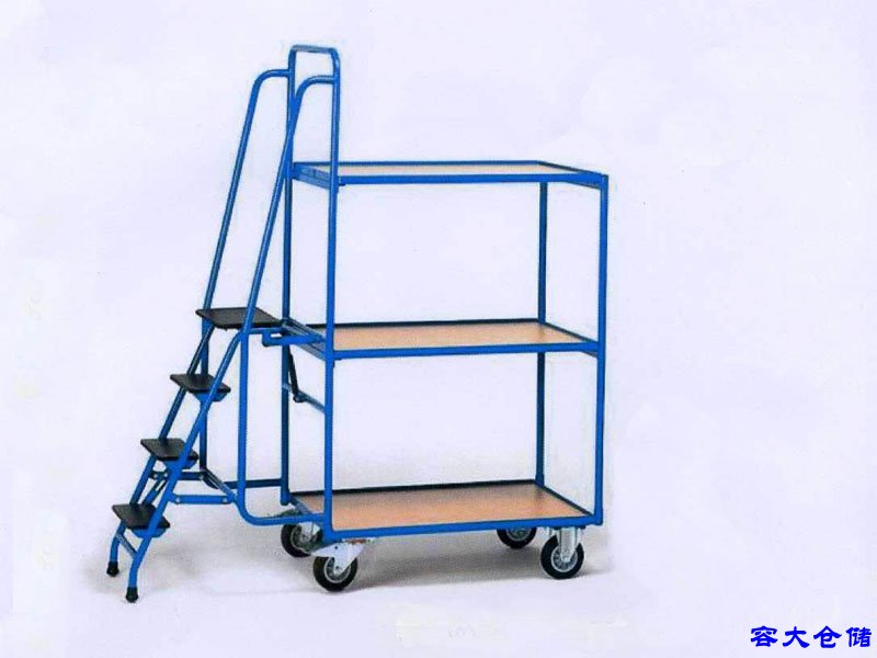 登高車是倉儲物流中使用的一種登高作業(yè)設(shè)備,類似于登高扶梯的作用??煞奖闳藛T站在車平臺上實現(xiàn)存取貨物等作業(yè)行為。