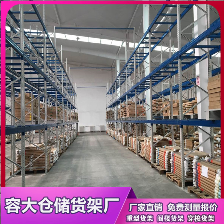 駛?cè)胧截浖苁前褦?shù)排立柱片連接起來,沒有橫梁結(jié)構(gòu),用頂梁支撐,采用導(dǎo)軌和托盤軌道連接而成,托盤直接放置在導(dǎo)軌上,叉車可以駛?cè)胪ǖ纼?nèi)存儲(chǔ)貨物,先進(jìn)后出,適用于少品種大批量存儲(chǔ),空間利用率約為60%-70%,可以滿足食品行業(yè)的冷庫需求。